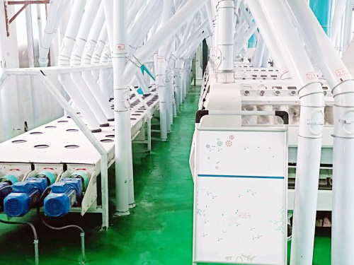 在倉儲、干法清理,制粉及面粉配粉的各道工序完全自動化,日加工小麥200噸的面粉加工生產線。